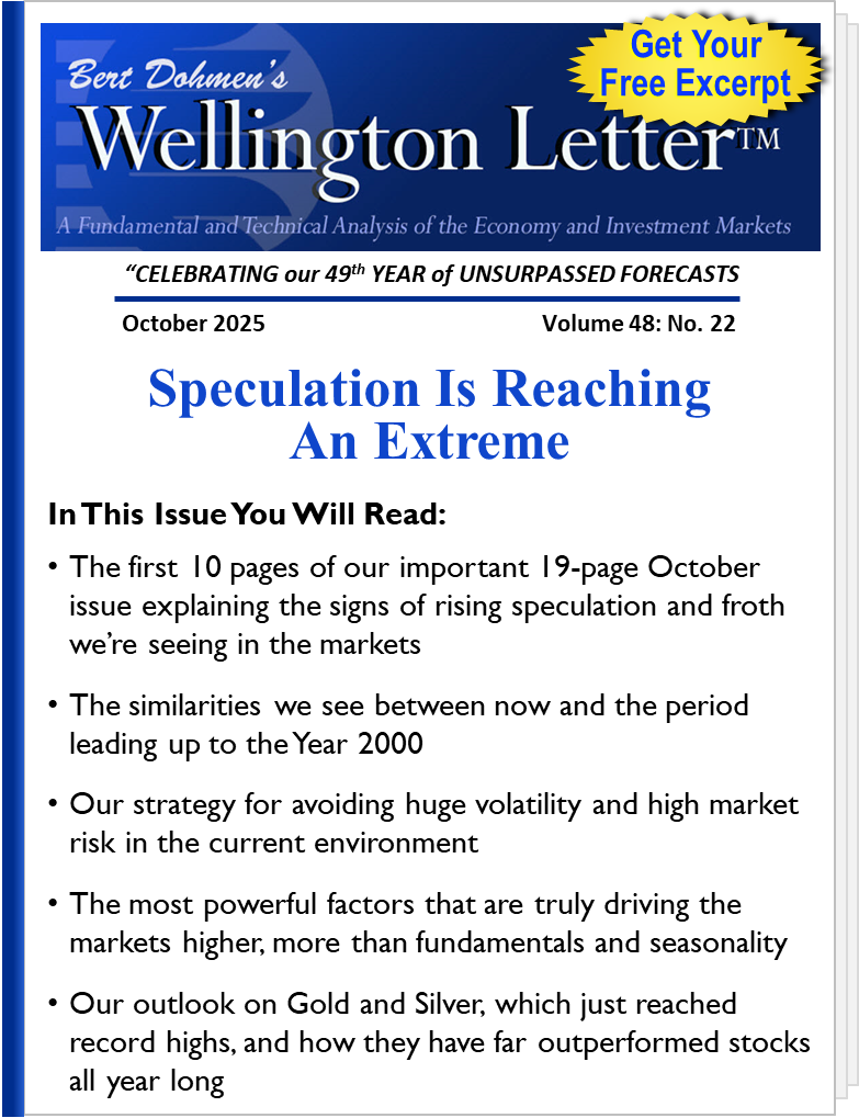 Bert Dohmen’s experience of more than four decades trading the markets, using sophisticated technical analysis in combination with an astute analysis of the credit markets, can be your guide on a continuing basis. It’s like going to war with the most experienced platoon leader, rather than a rookie.